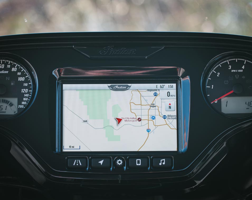Ride Command® 7-Zoll-Display mit vorinstallierter GPS-Navigation, Apple CarPlay®, Bluetooth®-Konnektivität, konfigurierbaren Anzeigen, Fahrstatistiken und weiteren Funktionen.